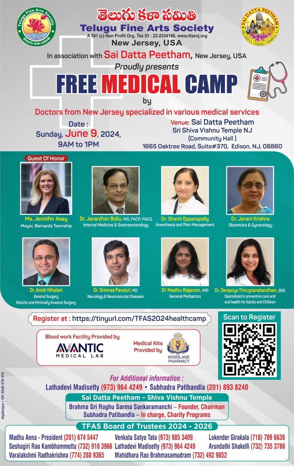 1. TFAS MEDICAL CAMP at Sai Dattah Peetam, Edison NJ on June 9th 2024