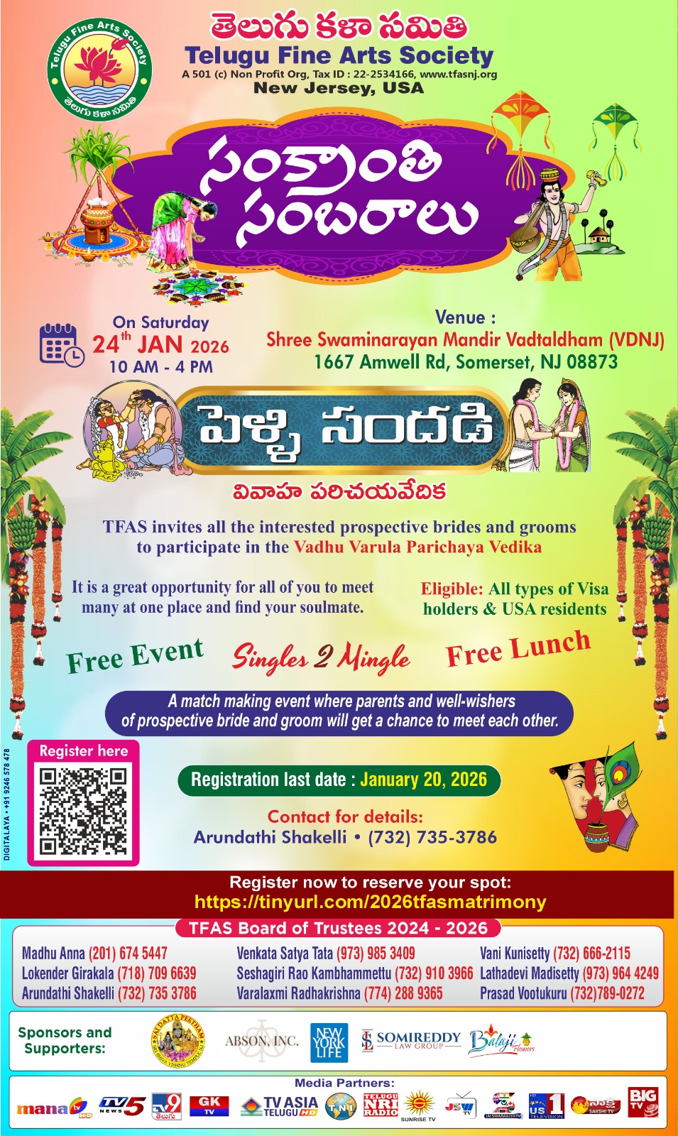 26.TFAS Sankrathi 2026, Pelli Sandadi, Swamy Narayana Temple, Somerset, NJ on Jan 24th 2026
