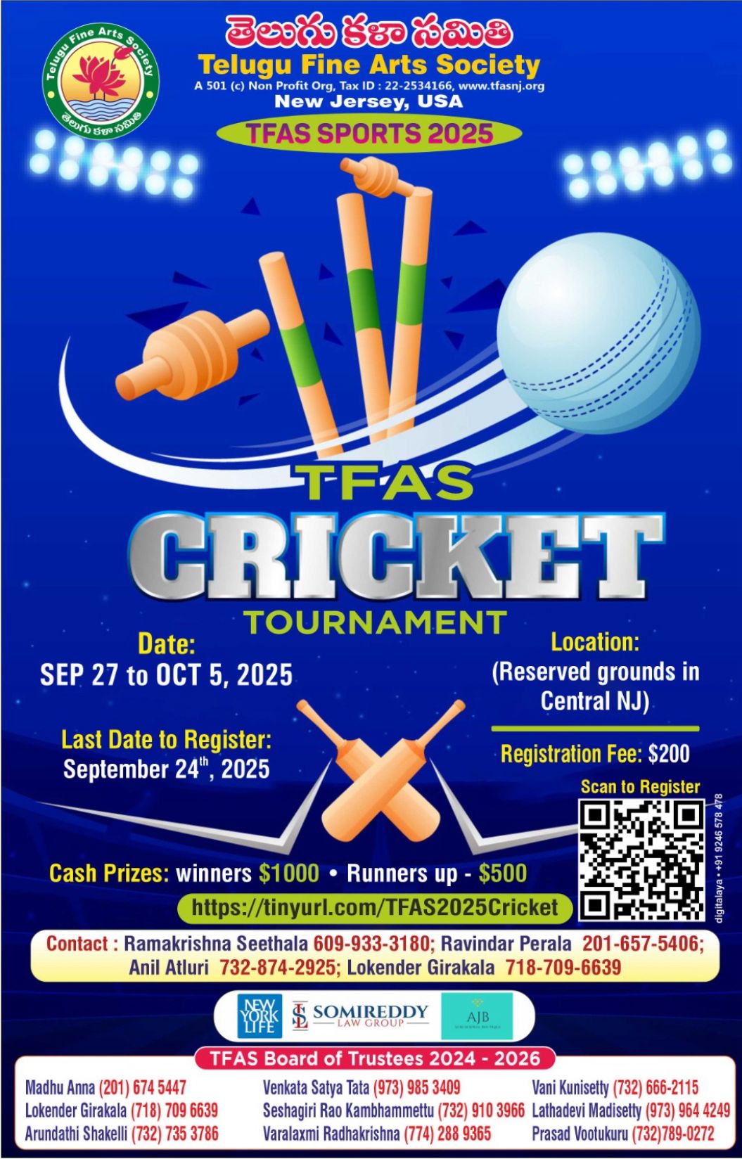 22.TFAS 2025 Cricket Tournament, NJ on Sept 2025