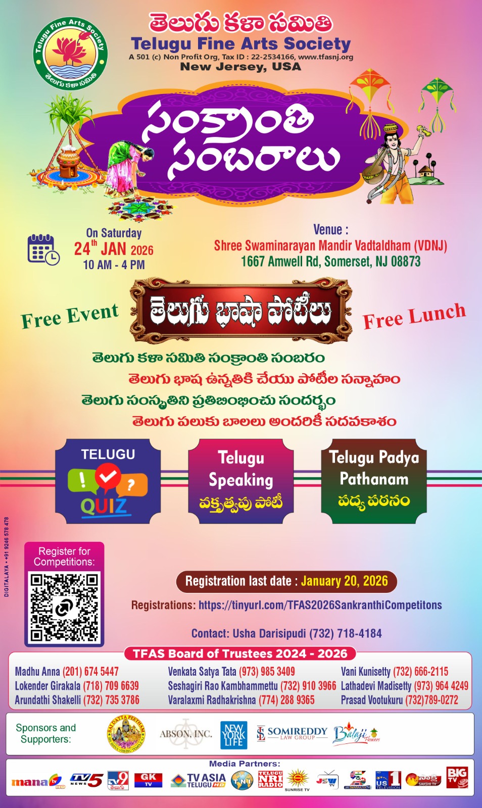 28.TFAS Sankrathi Sambarallu 2026, Swamy Narayana Temple, Somerset, NJ on Jan 24th 2026