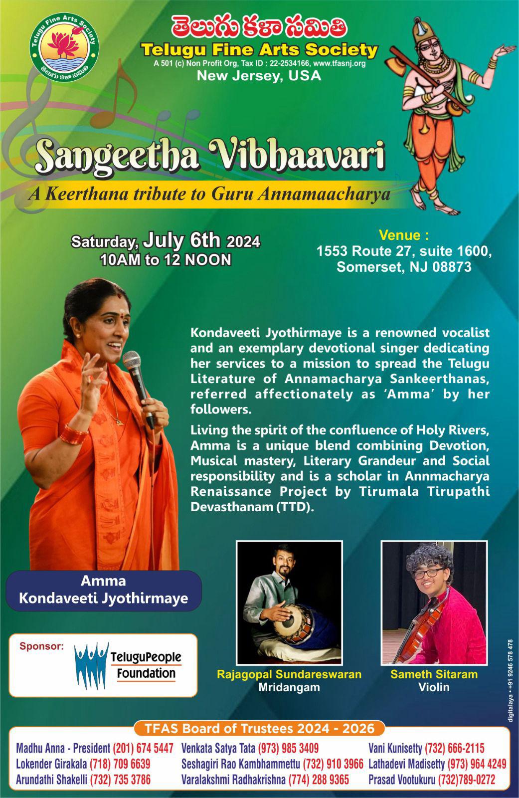 3. TFAS Sangeeth Vibhaavari by Kondaveeti Jyothirmaye,Renowned Vocalist and a Devotional Singer at Somerset NJ on July 6th 2024