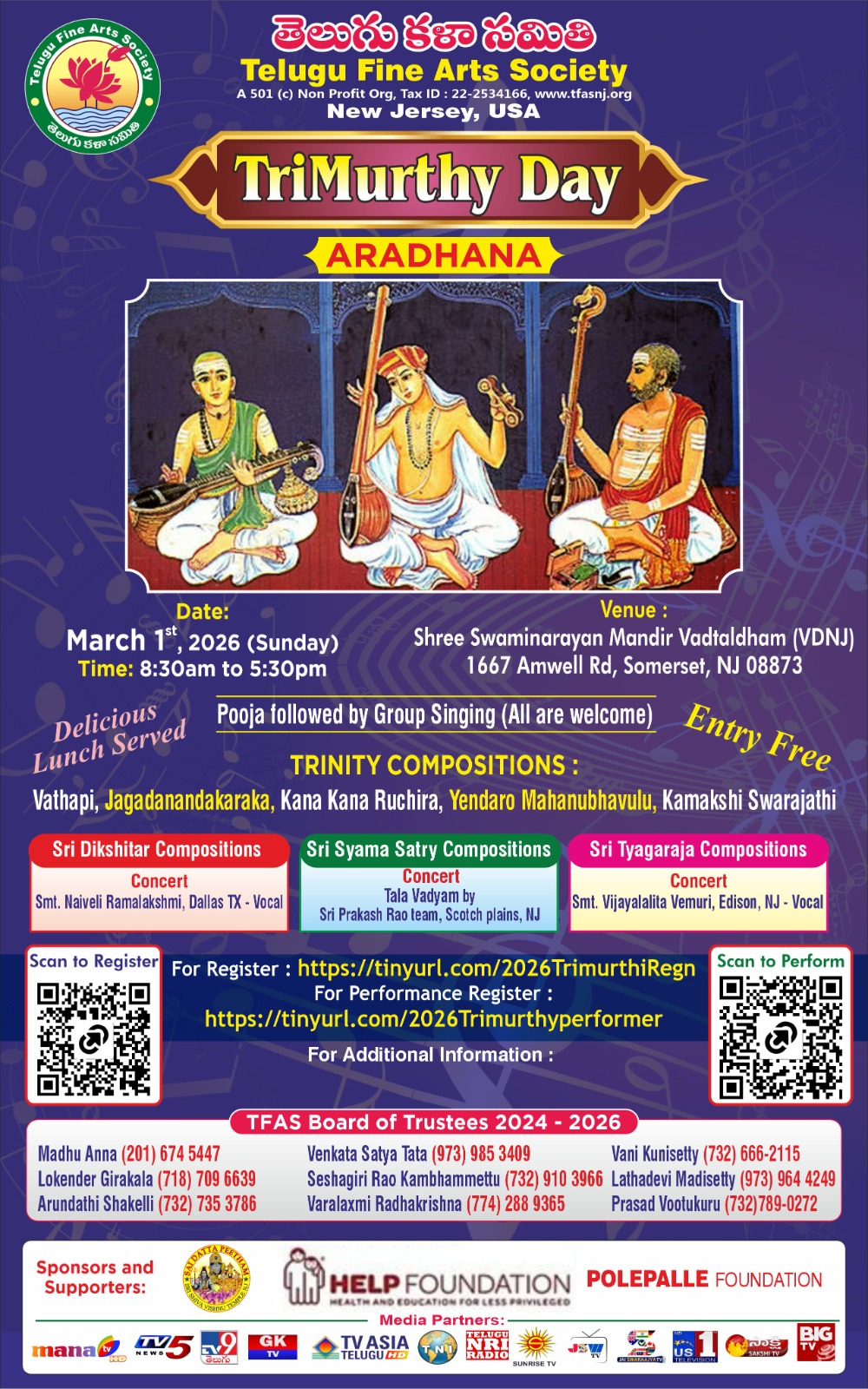 29.TFAS TriMurthy Day 2026, Swamy Narayana Temple, Somerset, NJ on Jan 24th 2026
